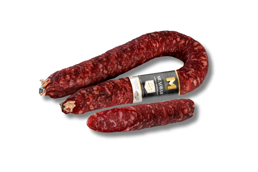 Колбаса с/к "Медовая" обладает мягким вкусом с идеально сбалансированным содержанием специй. Сырокопченая колбаса — продукт любимый многими. Обязательный гость праздничного стола, а некоторые не представляют завтрак без нее. Пряный аромат, умеренная жирность и разнообразие вкусовых оттенков завоевали любовь потребителей. Изготовленная с соблюдением технологии колбаса является деликатесом. Продукт замечательно вписывается в разные блюда, от бутербродов до нарезок.